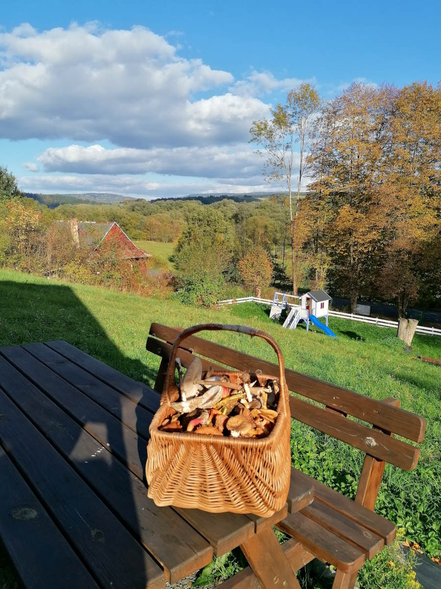 Połowę działki (3ha) stanowi las, w którym Goście mogą np. zbierać grzyby, bądź odpoczywać na rozwieszonych hamakach.