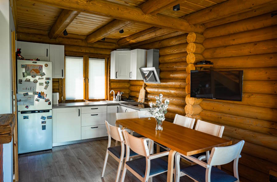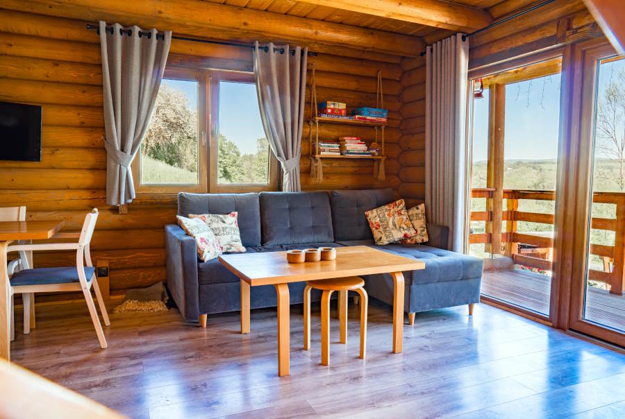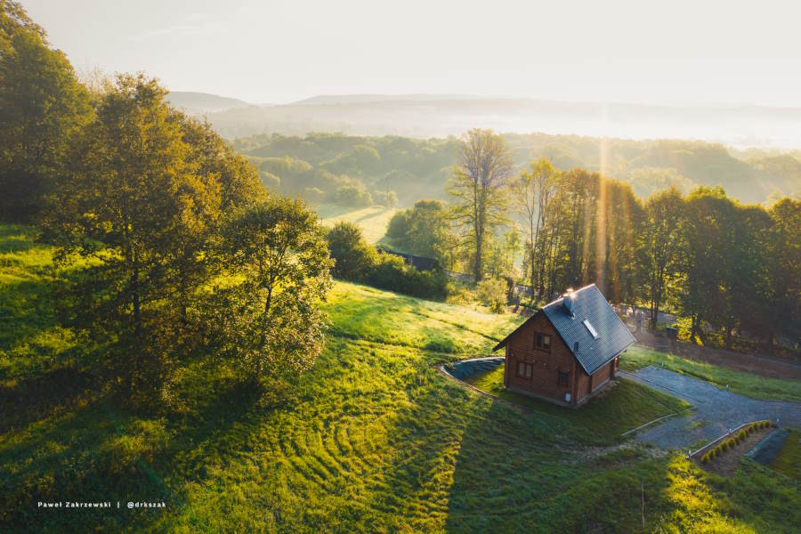Dwa drewniane domy z bali czekają w Uhercach Mineralnych, na samym skraju Bieszczad. Każdy domek na piętrze ma 2 sypialnie. Parter stanowi część wspólną, na co składa się przestronny salon z otwartą kuchnią, kominkiem i rozkładaną sofą oraz łazienką. Na parterze również jest weranda na której można zrelaksować się na hamaku.
