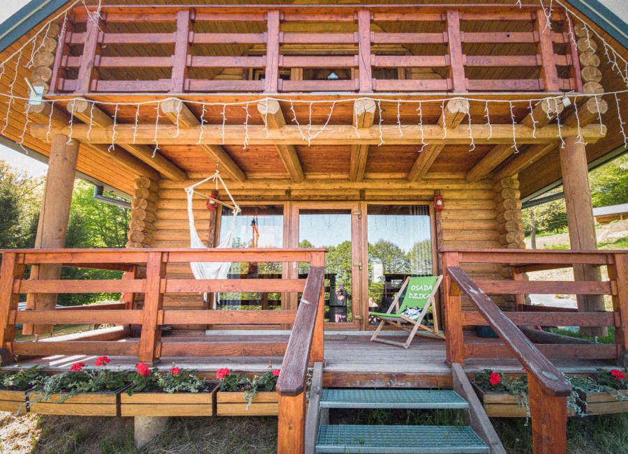 Osada Dzika to dwa klimatyczne domy z bali, położone na skraju lasu w malowniczej miejscowości Uherce Mineralne, tuż przy granicy z Rezerwatem Bobra i w sąsiedztwie rzeki. Cały teren obejmuje aż 3 hektary i jest w pełni ogrodzony, jednak ponieważ las żyje swoim życiem i sarny czasami potrafią uszkodzić ogrodzenie, sprytni uciekinierzy potrafią ominąć wszystkie przeszkody. Ponad połowę działki zajmuje prywatny las – idealny do spacerów, zbierania grzybów czy relaksu w hamakach rozwieszonych pomiędzy drzewami.
